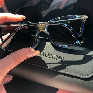 Valentino sunglasses. Blue tortoise shell with gold accents. Like new. Worn once for like an hour. Comes with Valentino case.
