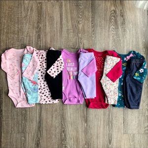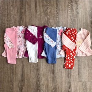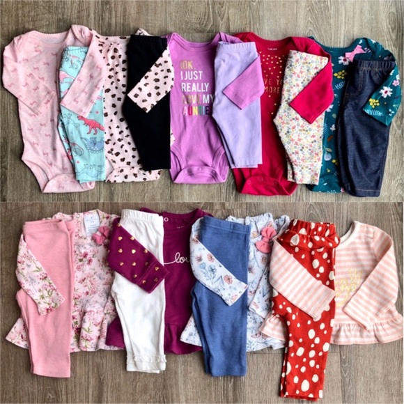 All these items are pre-loved, washed in cold & hung to dry. Includes: 5 Onesies & 5 Leggings