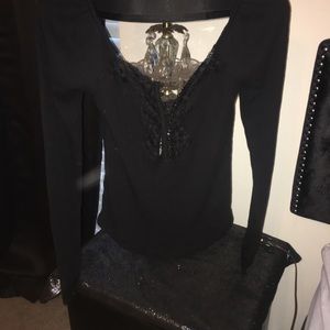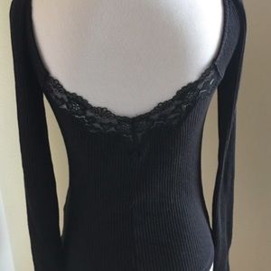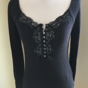 Free People ‘To the West’ long sleeve lace Henley. Color is black. Size is XS. Never worn but no tags. No flaws! I searched high and low for this top but I’m short and don’t feel it fits me well. It’s really comfy, sexy and highly sought after!