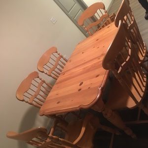 Solid wood dining set . Very heavy and durable. Almost new. I’m selling because it’s too big for my new apartment.