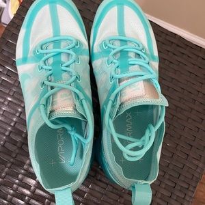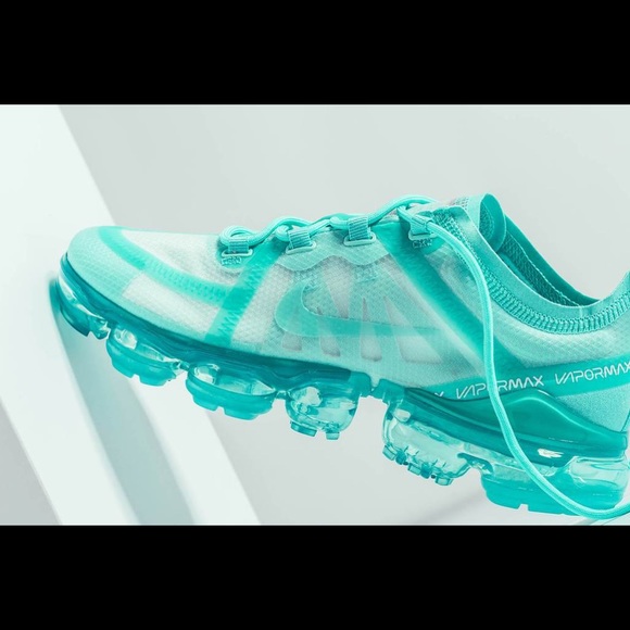 NWOT...NEVER BEEN WORN!!! The Nike Air VaporMax 2019 "Teal Tint/Tropical Twist" wraps your foot in a stretch woven material that gives structure and support to your stride. Underfoot, Air Max cushioning gives a bouncy sensation so that you can go for miles. NO TRADES