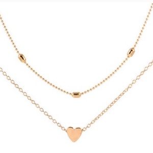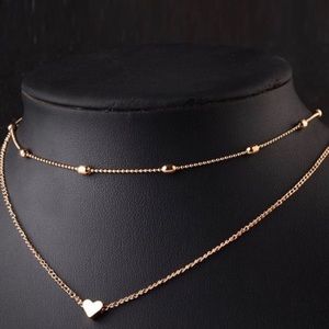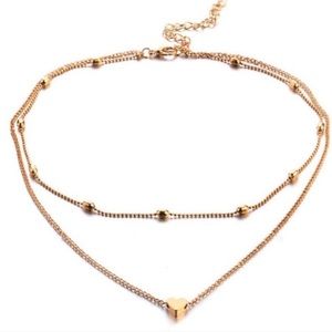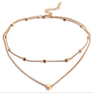 NEW Dainty Gold Double Layer Heart Choker Necklace