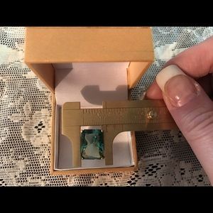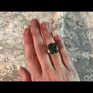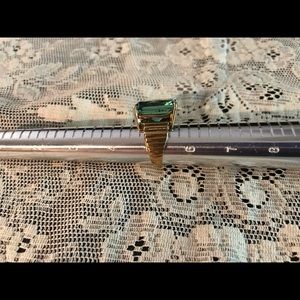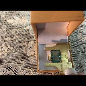 STONE: ONE LARGE EMERALD CUT RECTANGLE TEAL GREEN BLUE STONE.