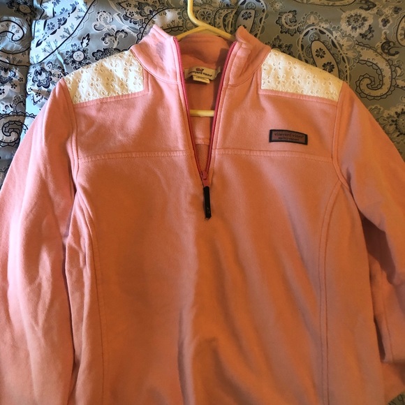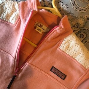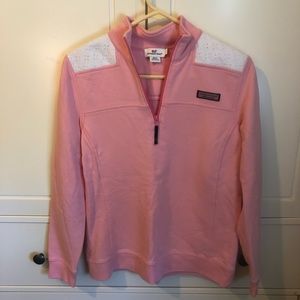 Vineyard Vines pink shep shirt! This has a white eyelet pattern on the shoulders and back. Size small, lightly worn in perfect condition. Super cute!! 💞
