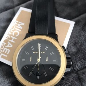 Michael Kors Dylan Chronograph Black Dial Watch. Gentle used,excelente condition .come with box and tag book.it need battery , I have it but haven’t have time to change it,I will include it.