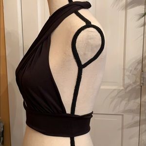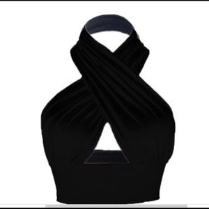 This beautiful and classy halter top is backless.