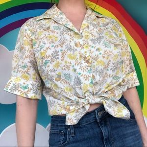Darling vintage print. Love the yellow and green flowers on this shirt. Just a little ray of sunshine.
