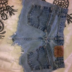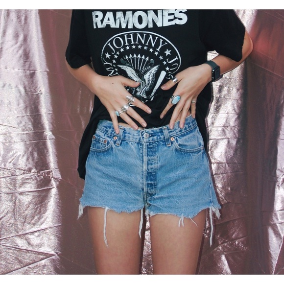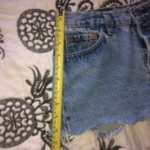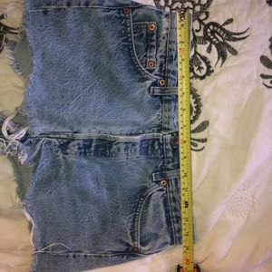 These are high-rise, medium wash denim cutoff shorts. Fits size 25/26. Super comfy and perfect for summer!!💖🍭🌞