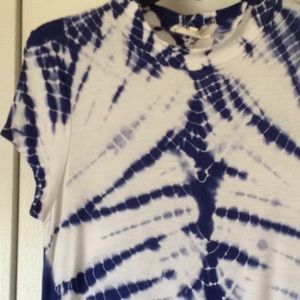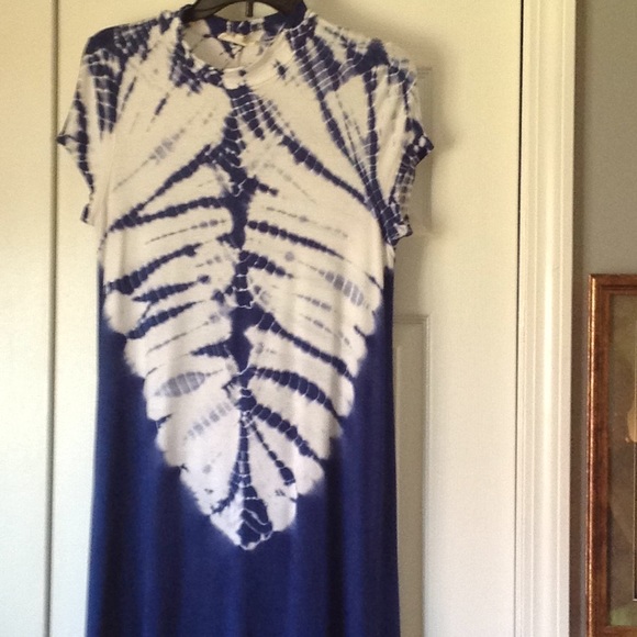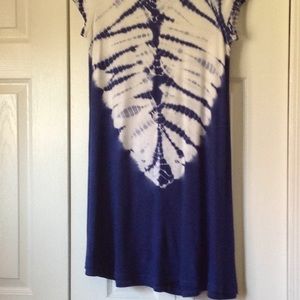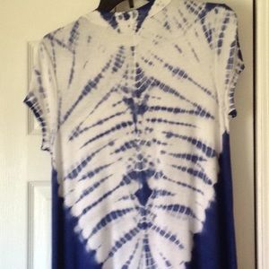 Blue, tie-dye cap-sleeved soft cotton dress.