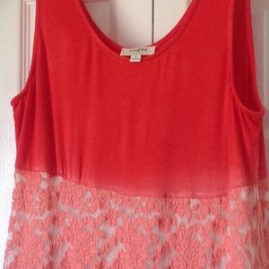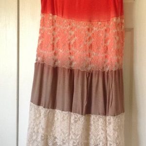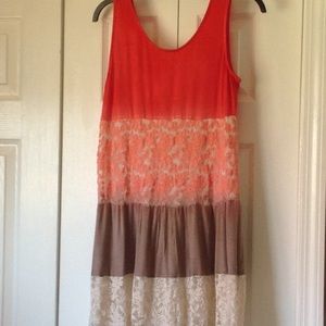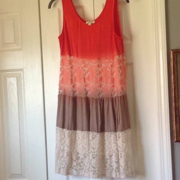 Orange, brown ombré-looking, cotton dress. It goes a little pass my knees (I'm 5'3). It's so cute & comfortable!