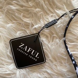stars on one side, white marble on the other! got online and it didn’t fit and can’t return it now. so cute and would wear it if it fit :/ probably fits an A or B cup.
