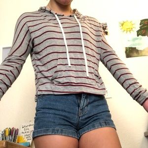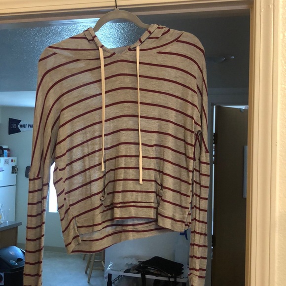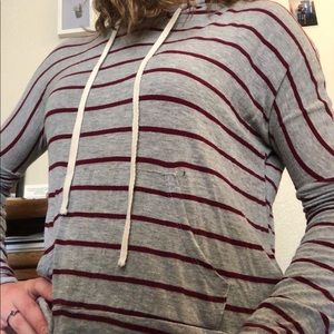 Gray and red striped top, very comfy