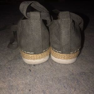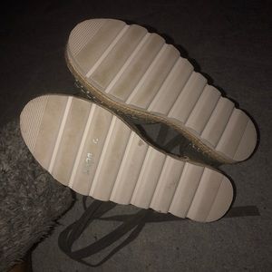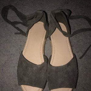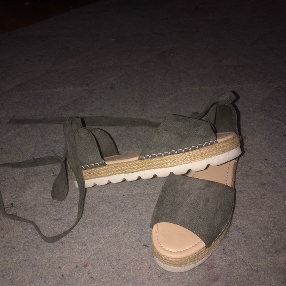 Super cute gray platformed sandals! I have had these for a long time and theyre unbranded. They dont fit anymore and were only worn on fancy outings. I would say theyre about a 6 or 6.5 !