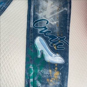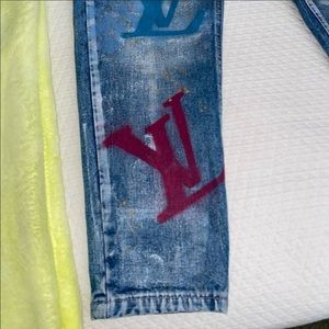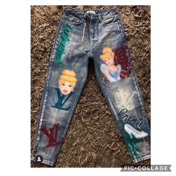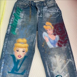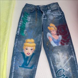 Worn once like brand new they was washed sanitized and hung to dry so no damage was done to them these jeans was custom made off Instagram size xs or 2-4 in jeans they r baggy boyfriend style n can be worn high waisted or low wise