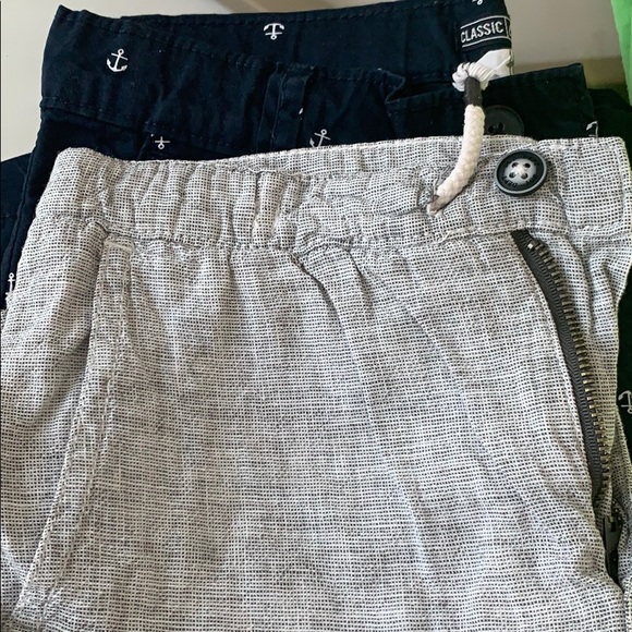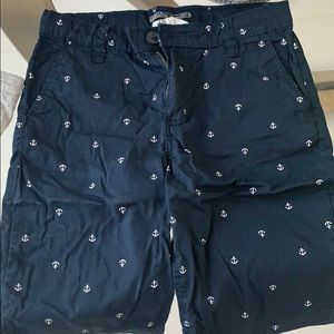 Dark navy shorts w/little white anchors throughout/ 2 front pockets/ 1 back pocket
