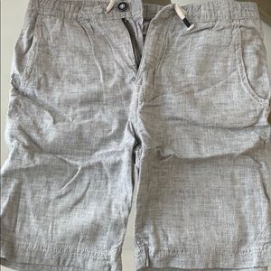 Light gray shorts w/tiny black and white specks throughout / button/zipper/ tie string / 2 front pockets / 2 back pockets