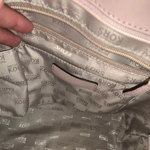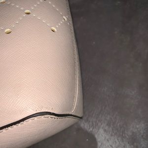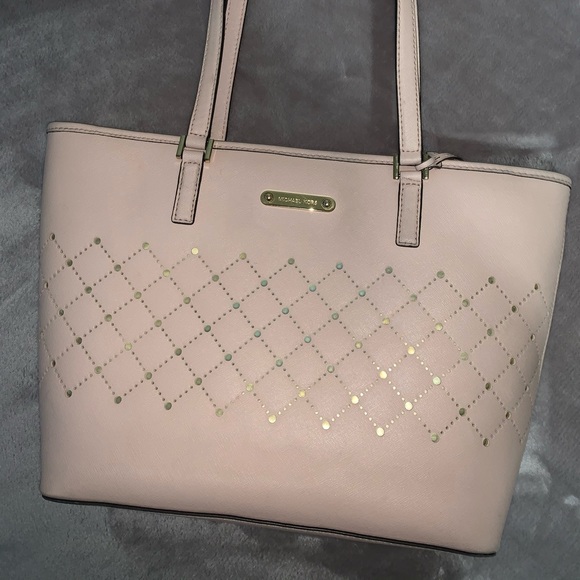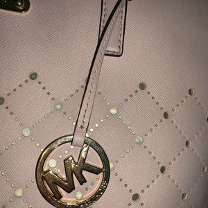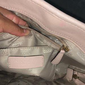 Beautiful Michael Kors Tote, in great condition, very clean ( check the pics ) color pink ,a minor descoloring on the 2 bottom corners, but you can’t even see it while wearing it.beautiful shiny details around the bag, take advantage of this great deal!!
