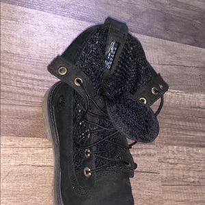 RARE: Black knitted timberland boots, my favorite fall time boots! Perfect with long socks, and the tops rolled down a bit!