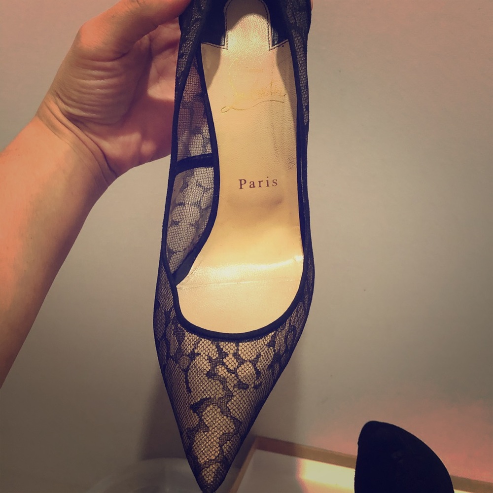 Gorgeous louboutin lace heels. Has some wear, scuffs on the leather. Priced accordingly. Please know your louboutin size. Comes with box and dust bag.