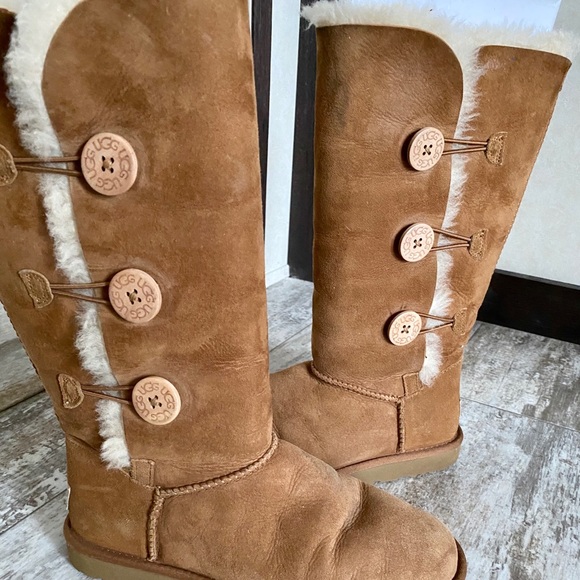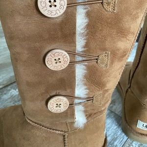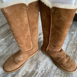 Women’s size 9. Color brown. Tall Bailey button ugg. Can be worn 3 different ways as shown in pictures. Overall good condition. Smoke/pet free home. These were my 16yr old daughters for Christmas. Worn 1/2 of a school year. Paid $300! No box included as she threw it away at Christmas.