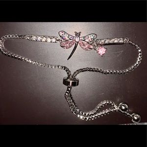 New in box brilliance sterling silver & genuine crystal dragonfly bracelet - beautiful