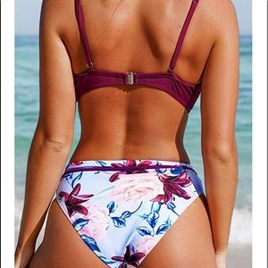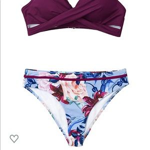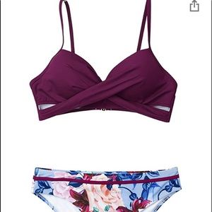 Women's Wrap Top Floral Bottom Bathing Suit Two Piece Sexy Swimsuit