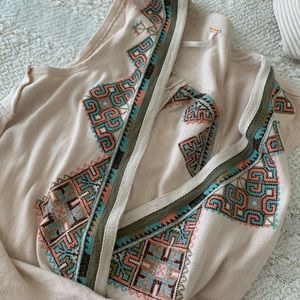Such a cute piece! Very trendy & comfy, worn in look. Size xs but could probably fit an small as well
