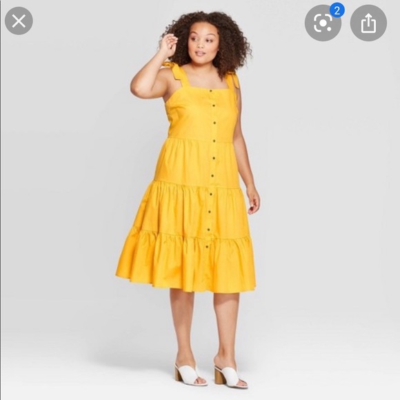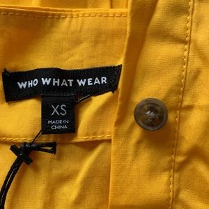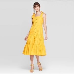 Dress has buttons down the center and has really pretty ruffles at the bottom! It also has a nice tie feature on the straps! Really pretty on and the perfect summer dress! Size XS, NWT, needs to be ironed or steamed that is why it appears wrinkly in the photos!