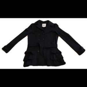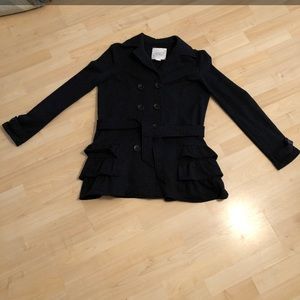 Stay warm during this cool weather with the Mid-Length Ruffled Bottom Dress Coat. This gently used dress coat adds the perfect touch of sophistication to any outfit. It is great for staying warm or going casual. So comfy!