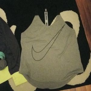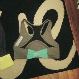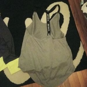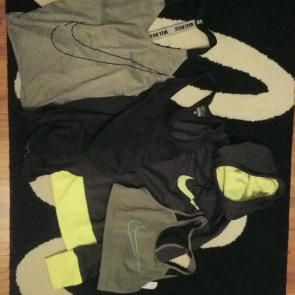 Both tank tops medium, sport bra large teal, hoodie neon yellow medium, leggings black w purple on the side