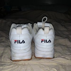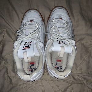 White Fila disruptors with orange/brown sole / worn a few times but in good condition/ will trade for other filas or other shoes I’m ISO!