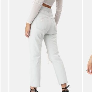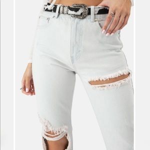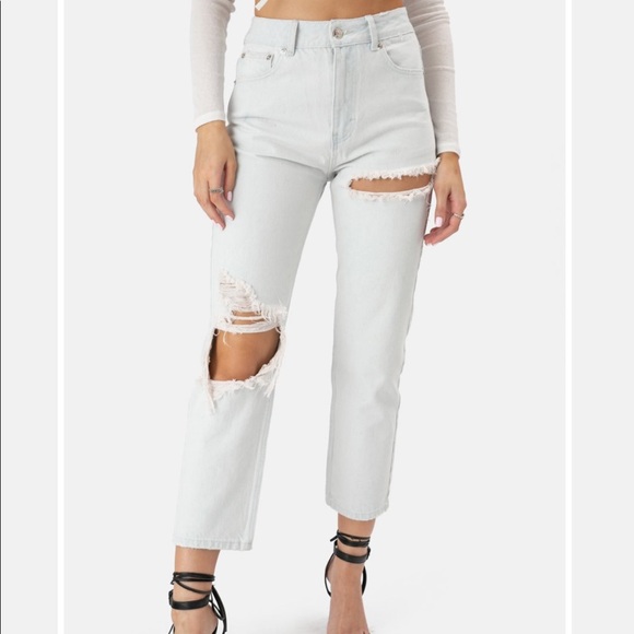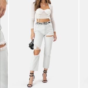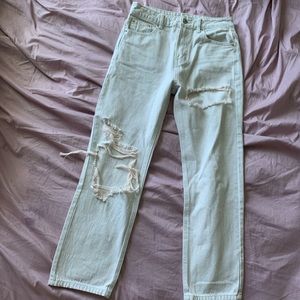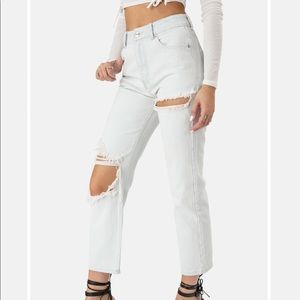 High-wasted straight leg ripped jeans
