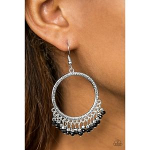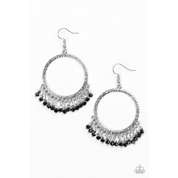 Nwt silver textured hoops with black fringe style beading Lead and nickel free