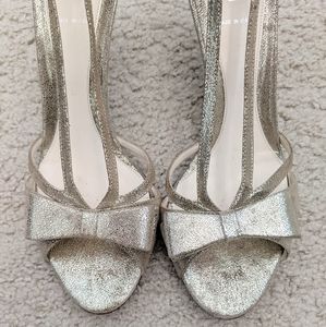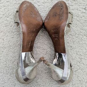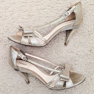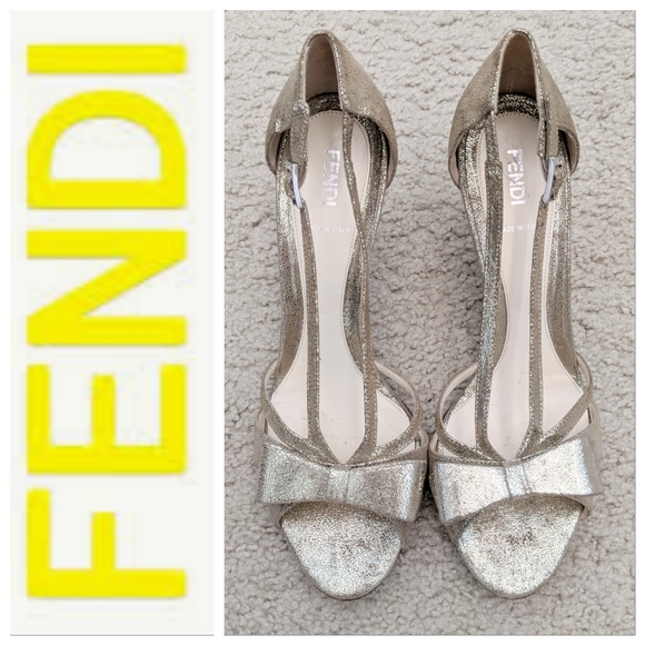 ๐ธGORGEOUS Pre-loved โค๏ธ Excellent Condition Fendi Sparkling Champagne Gold Bow Front Suede Leather Heels In Size 39.5 (Fits Best US Size 9-9.5)๐; Silver Metal Top 3.5" Suede Leather Heel; Fendi FF Metal Plate Logo On Back Sole; FENDI Written On Buckles; Gently Worn Once With Love and Care; Light Wear on Soles; Retail $1195; Accepting All Reasonable Offers ๐๐๐๐ฐ