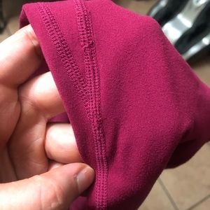 Great condition! Just bought and I didn’t like them as much as I was expecting! Worn a handful of times (from previous seller) I washed and hung dry once. They do not have a tag but last seller said they’re size Large. I would say that they fit a little smaller! Will post more pics soon! Open to offers!! 1st pic with measurement is the waist! A few loose threads and tiny pilling around the pocket seam! Raspberry color!
