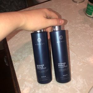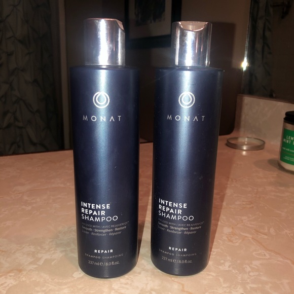 2 bottles of intense repair shampoo. One is completely full, unused. The other bottle is about half full.