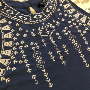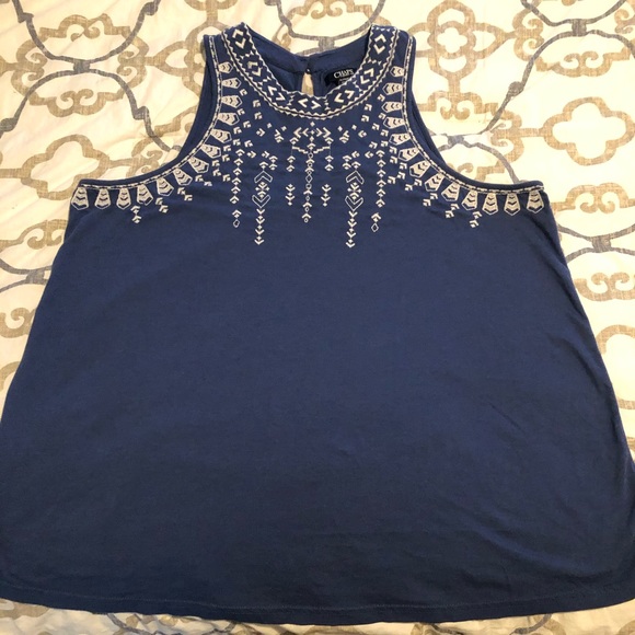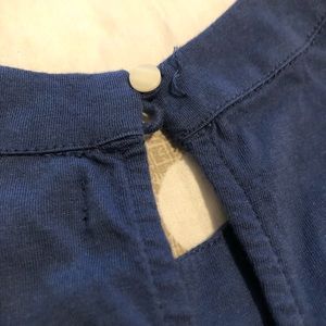 Sleeveless with high neck. Absolutely love this top but in all honesty, my boobs are too big. Haha. It is missing one button from the back but doesn’t effect the top.