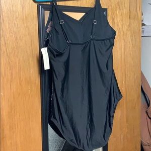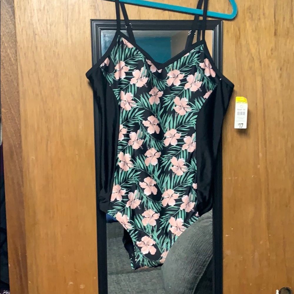 Brand new with tags. I got a bigger size since I am tall and have a long torso, but it just wasn’t long enough. I would say it can fit a lady that’s a size XL. It’s lightly padded and pads can be removed.