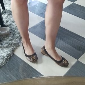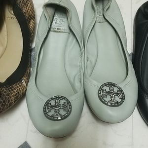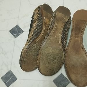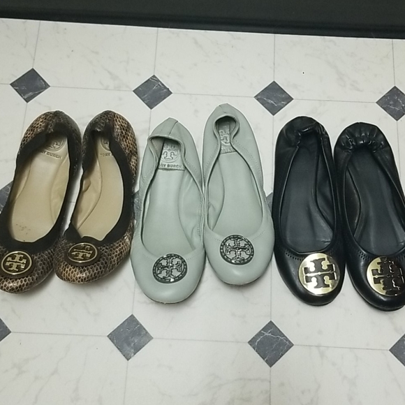 Black with gold buckle is size 7, bluish gray with silver buckle size 7.5, and the leopard one with gold buckle 7.5. Black one is almosy as new only worn once for $120. The others ines for $100 worn few times