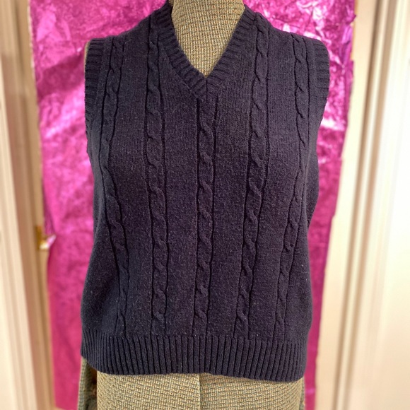 Classic Directions, dark navy blue sleeveless sweater vest, unisex, size medium
