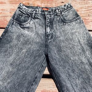 Super cute almost acid wash/black pair of vintage high rise BONJOUR jeans with cool zippers