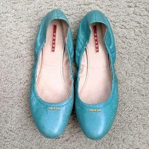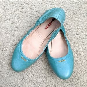๐ธ PRADA Made in Italy ๐ฏ Authentic TURQUOISE Green Nappa Leather Round Toe Ballet Flats in Size 40; Runs Small (European Sizing)โจ - Fits Best US Size Range 8.5-9.5; Soft Nude Rubber Traction Sole With PRADA Embossed At Heel; Prada Gold Logo on Face; Pre-loved โฅ๏ธ ExcellentโCondition with Some Minor Scruff Marks in Leather As Seen In Photos; MSRP Retail $995; Super Comfortable ๐งโโ๏ธ Italian Craftsmanship ๐ฎ๐น๐ง๐ฉโ๐ญ GORGEOUS ๐ PERFECT COLOR ๐ For Spring and Summer ๐๐