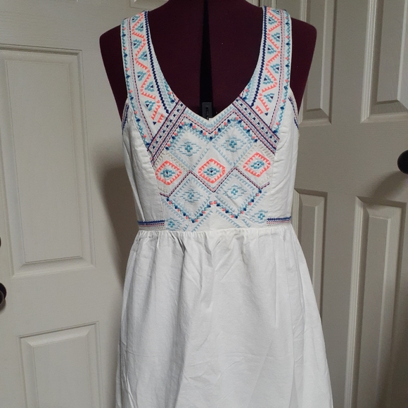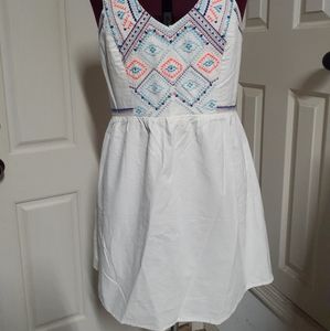 American Eagle Outfitters white dress with embroidery detail in front and back .