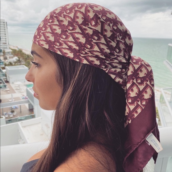 Christian Dior 100% silk scarf. 29” square, large enough to wear as a top, very versatile. Color is a deep purple burgundy and mauve. Gorgeous rare piece!
