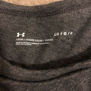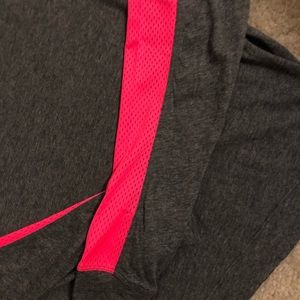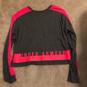Under armour cropped shirt. In excellent condition and was only worn once. No stains or problems. The sides of the sleeves are mesh. Is grey and coral/pink color