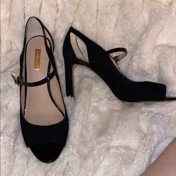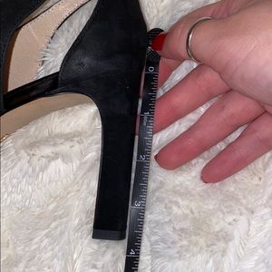 These hurt to let go. Super cute. And super comfy. Suade. Black. Heel size in pic. Slight discoloration to inner heel shown in pic.