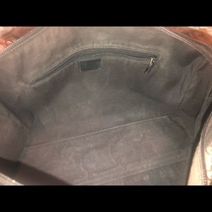 Monogram tote is crafted of glossy Gucci GG monogram coated canvas. Minor color fading for normal wear... not noticeable.