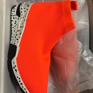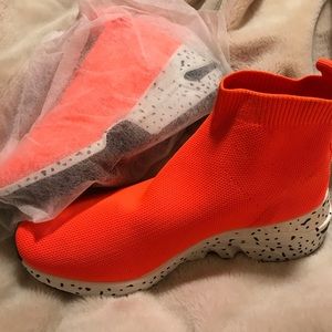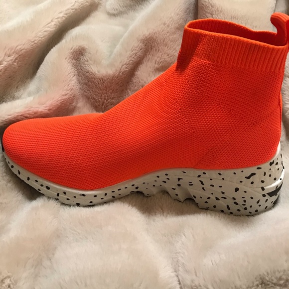 High top Orange Spot me out Sneaker slides right on and fits like a sock. Guaranteed to turn heads and get you plenty of compliments. Perfect for the Sunny weather 😎☀️Brand New in box 📦