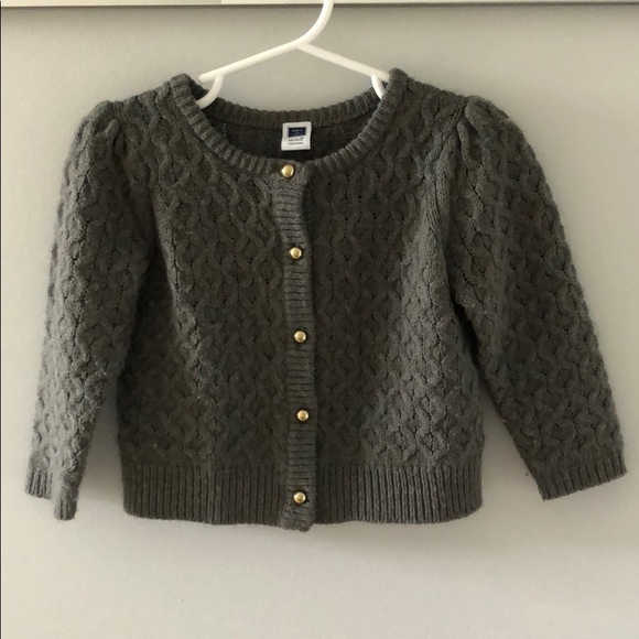 Janie and Jack charcoal gray cardigan sweater with gold button details.
