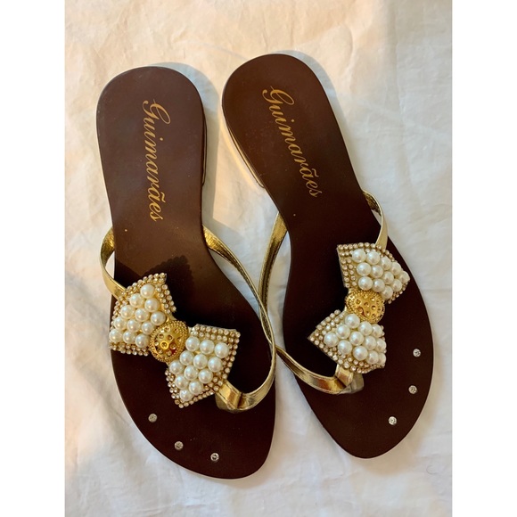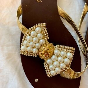 Pearl/beaded flip flop sandals! Brand new, never worn purchased in Brazil. Size 7.